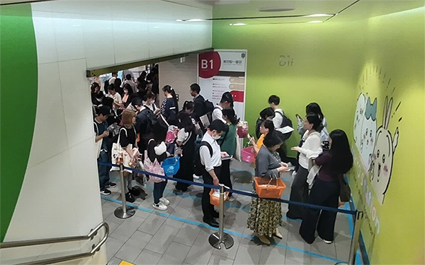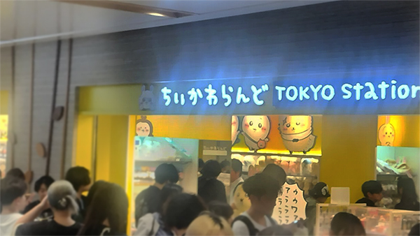 帰りに東京駅で土産やグッズの買う時間を取っていたので、職員のひとりは「ちいかわらんど」を狙っていたらしいですが、店外から新幹線に向かう階段まで二重にはみ出ている始末。